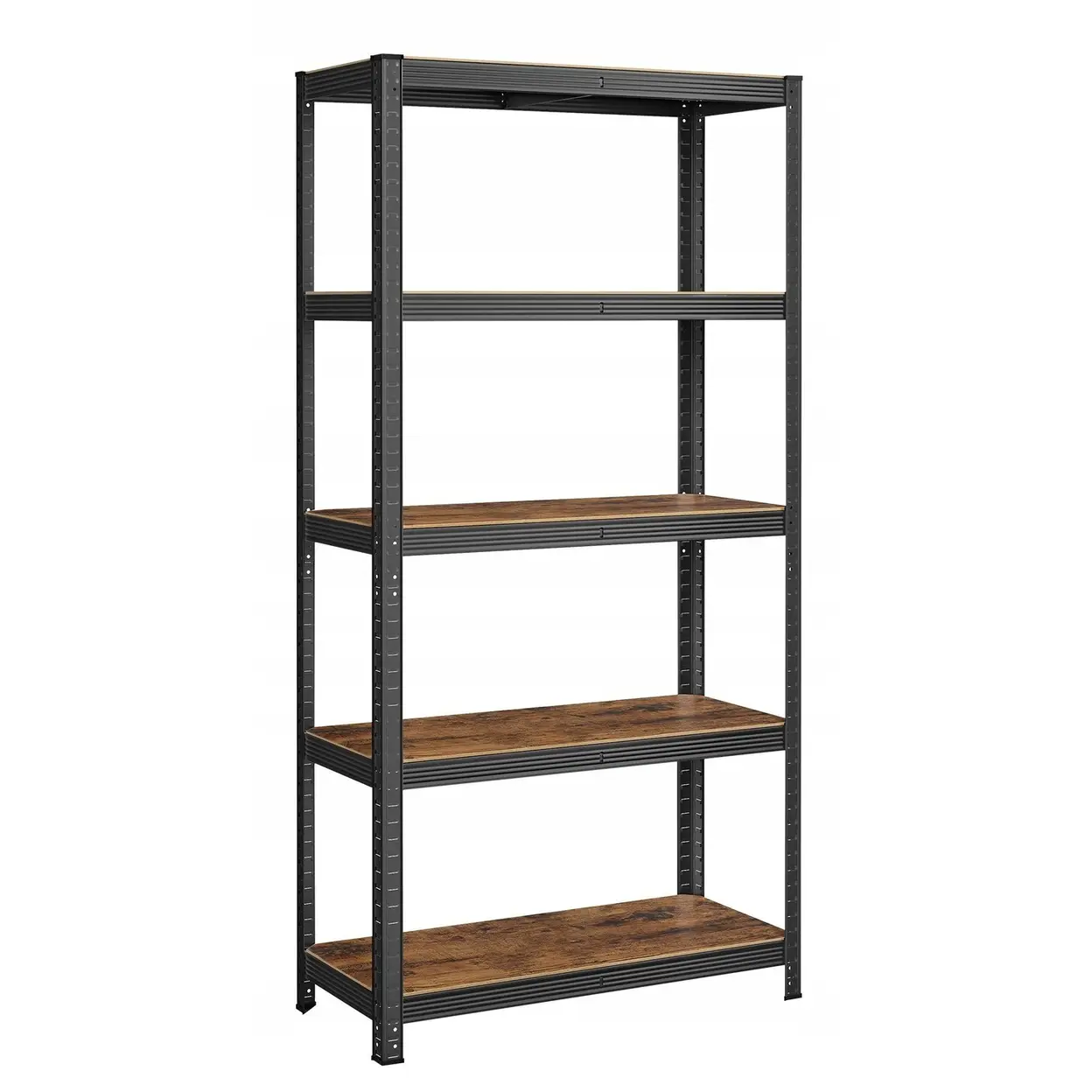 SONGMICS Regal, 40 x 90 x 180 cm, 875 kg Tragfähigkeit (175 kg pro Regalbrett), Industriedesign, verstellbare Lagerregale, für Wohnzimmer, Küche, Garage, rustikales Braun und Schwarz GLR040B11