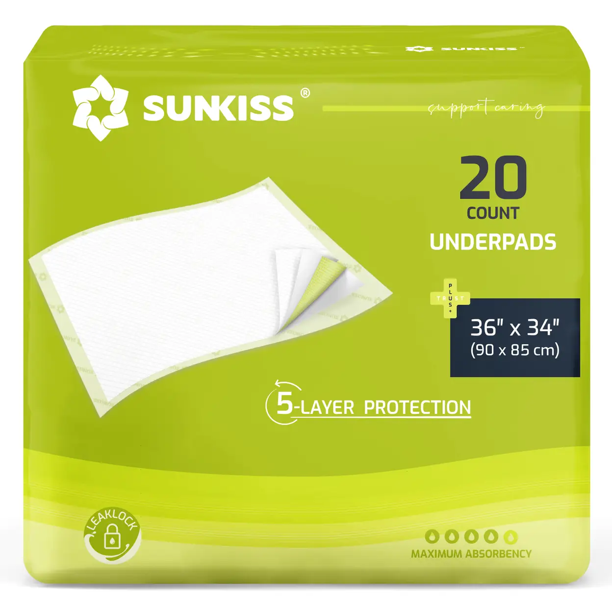 SUNKISS TrustPlus Krankenunterlagen 90x85 cm, Betteinlagen Inkontinenz einweg, Saugfähige Inkontinenzunterlagen, Baby Wickelunterlagen, 20 Stück 1er Pack