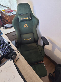 Symino Gaming-Stuhl, atmungsamer Bürostuhl aus hochwertigem Stoff, weich wie Fell, ergonomischer PC-Stuhl, verstellbarer und drehbarer Schreibtischstuhl mit Fußstütze, grün