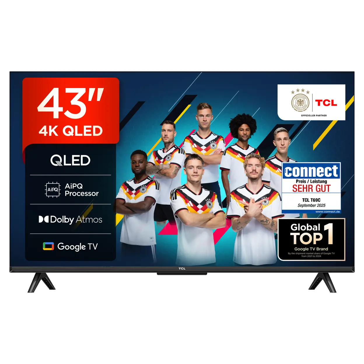 TCL 43T69C 43 Zoll QLED, Direct LED, 4K HDR, Smart Google TV mit Dolby Vision & Atmos, Game Master, Motion Clarity, Google Assistant & Alexa