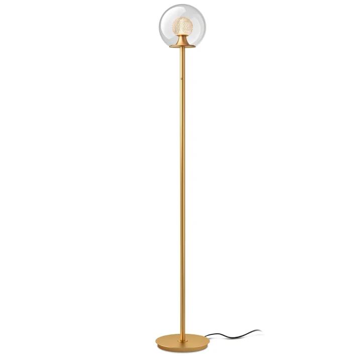 Tubicen Goldene Stehlampe mit Dual-Glas-Kugel-Schirm, Memory-Funktion, Art-Dekor, 4-Stufen-Touch-Steuerung, dimmbare moderne LED-Eck-Stehlampe für Schlafzimmer, Büro, Wohnzimmer, Nachttisch