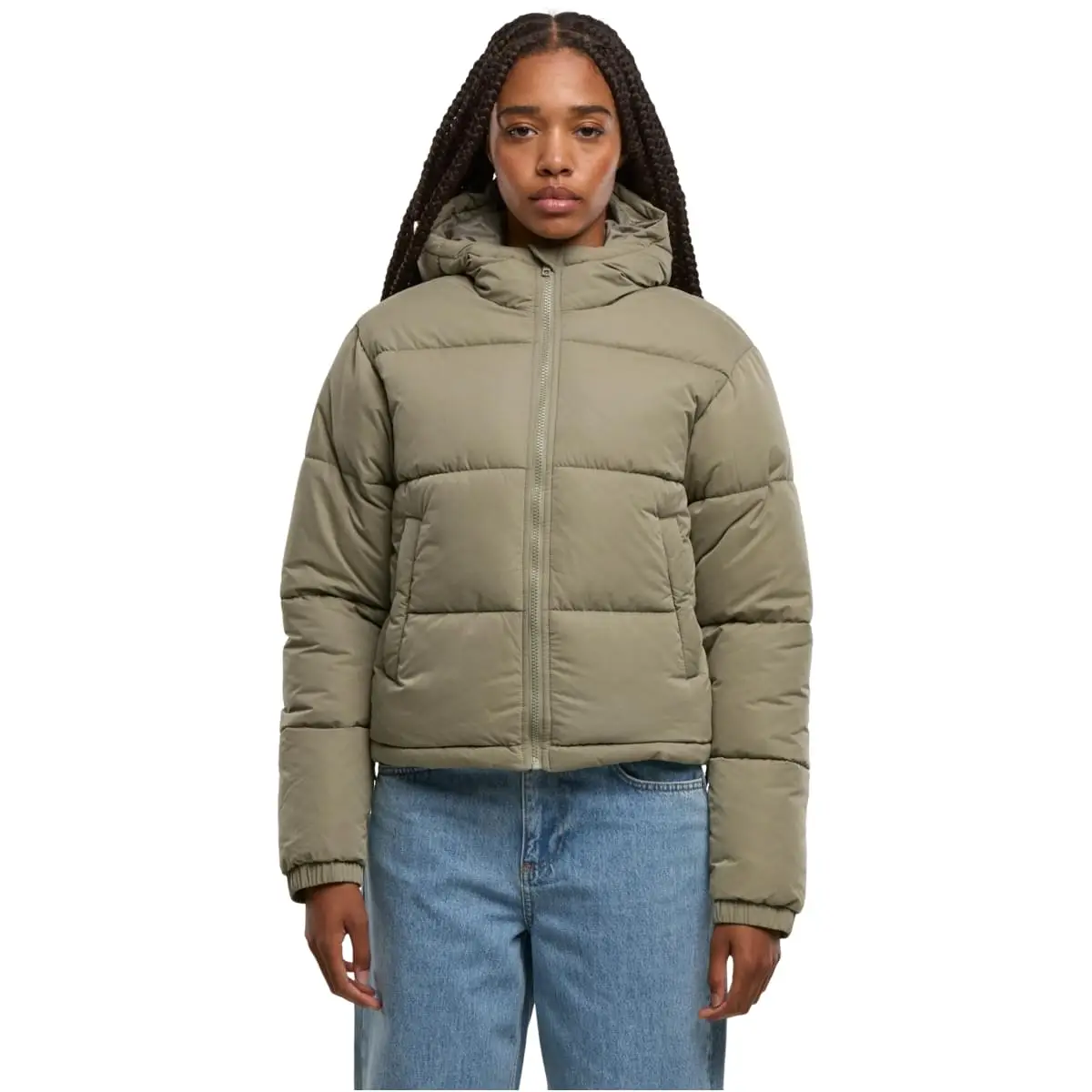 Urban Classics Damen Peached Pufferjacke mit Kapuze Winterjacke/Mantel paleolive L