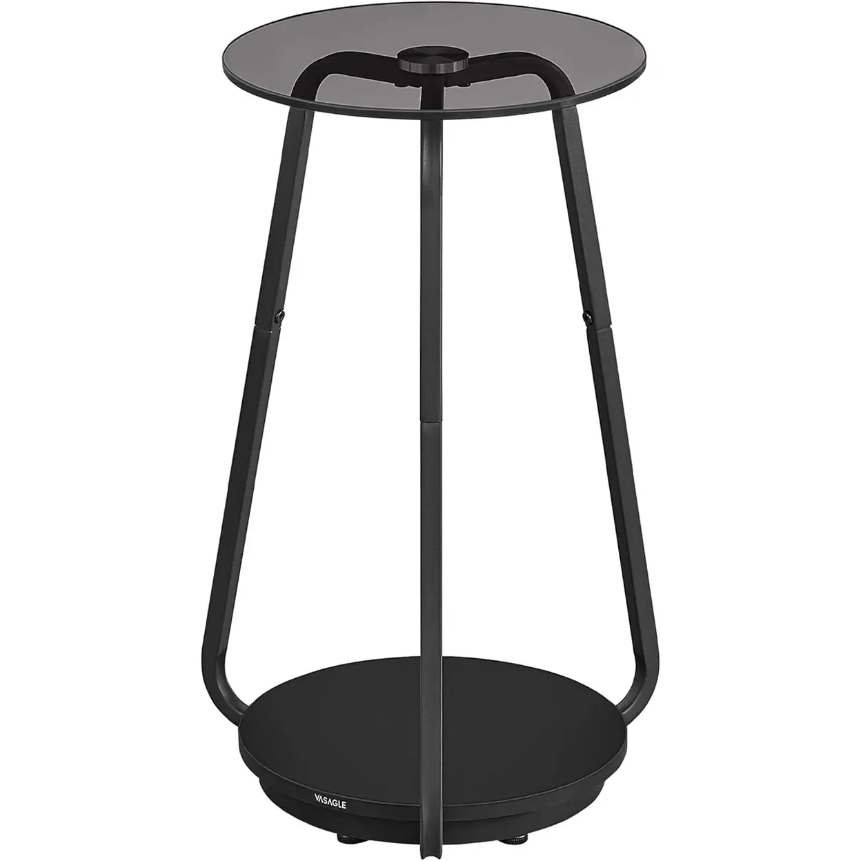 VASAGLE Rundes Nachttisch/Konsolentisch, 2 Ebenen, mit Glasoberfläche und MDF-Regalboden, für Wohnzimmer und Schlafzimmer, modernes Grau