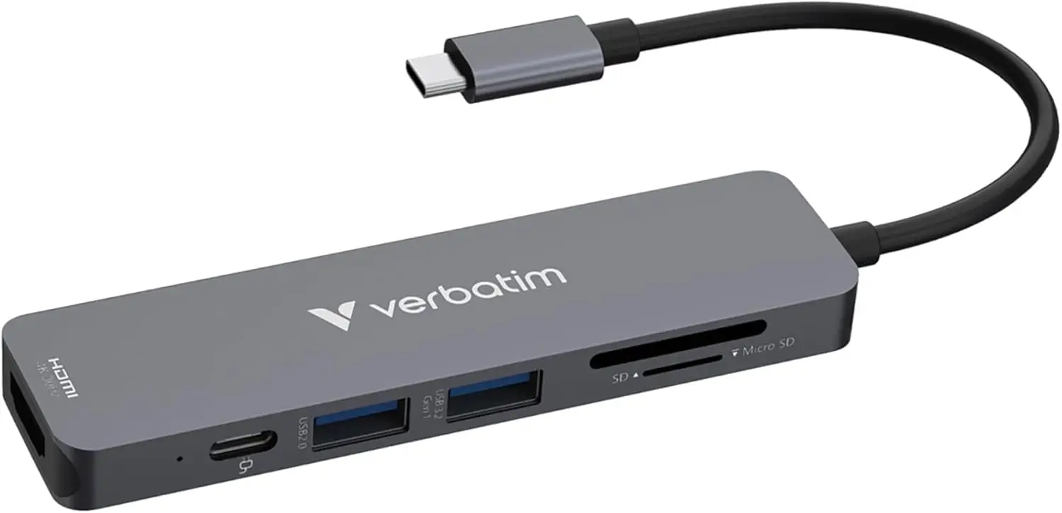Verbatim USB-C Hub Essentials, Multiport, 6 USB-Anschlüsse mit Kartenleser