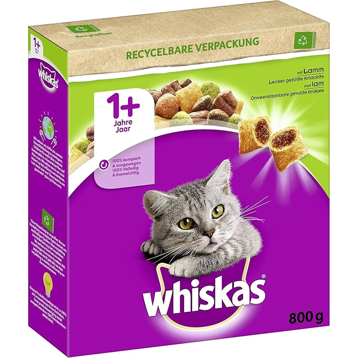 Whiskas Kartontrocken 1+ mit Lamm, 800 g