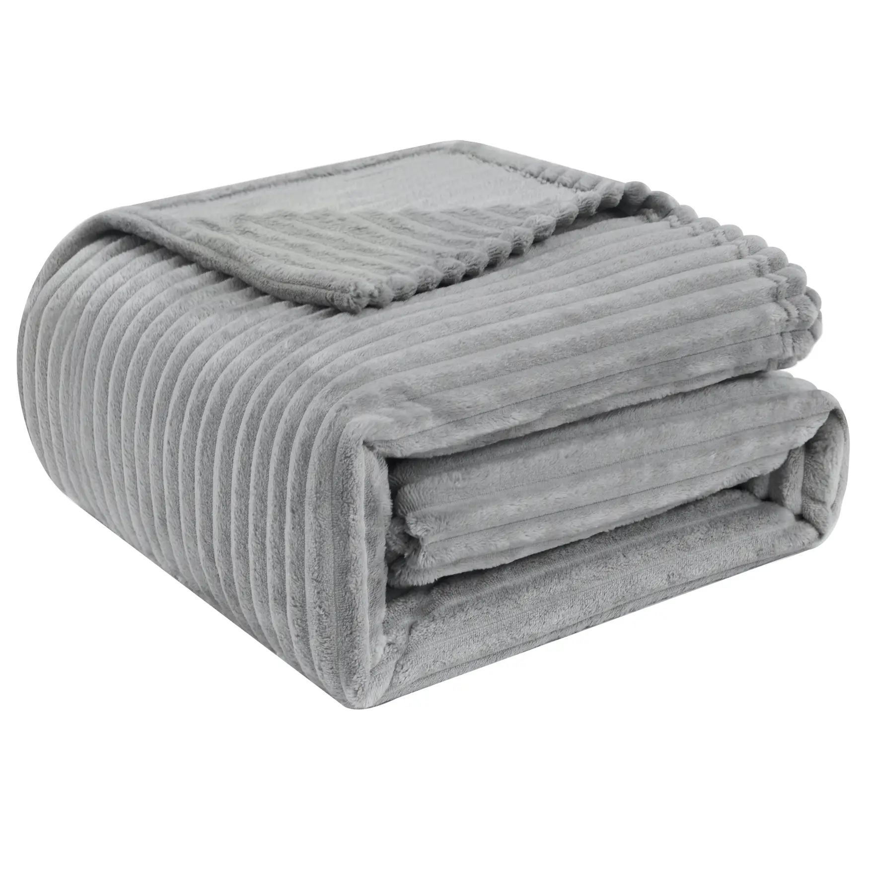 WOLTU Flanell-Fleecedecke, Kuscheldecke, Warme Sofadecke mit Streifenmuster, Dekorative Decke für Bett Couch, 220x240 cm Grau