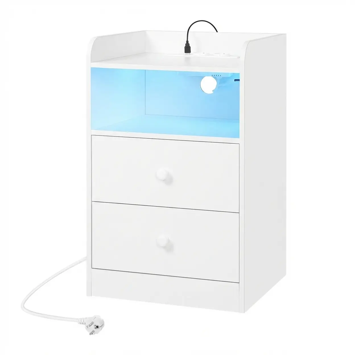 WOLTU Nachttisch mit Ladestation & LED, 2 Schubladen, Weiß, USB & Steckdosen, 40x35x64 cm