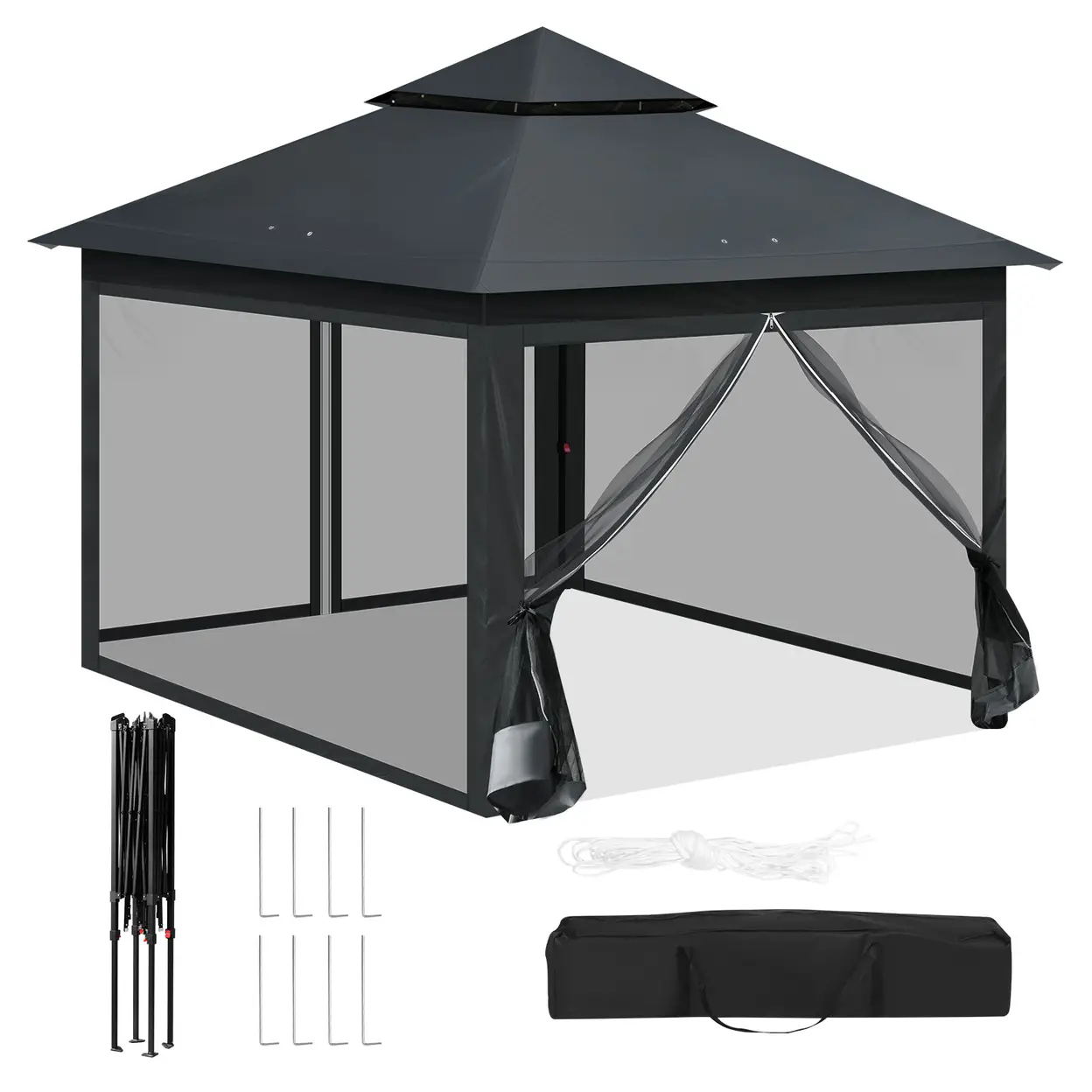 WOLTU Pavilion 3x3 m, klappbar mit Moskitonetz, wasserdicht, stabiles Partyzelt, höhenverstellbar, UV-Schutz, Gartenpavillon mit 4 Seitenpaneele, Partyzelt mit Tragetasche, Anthrazit