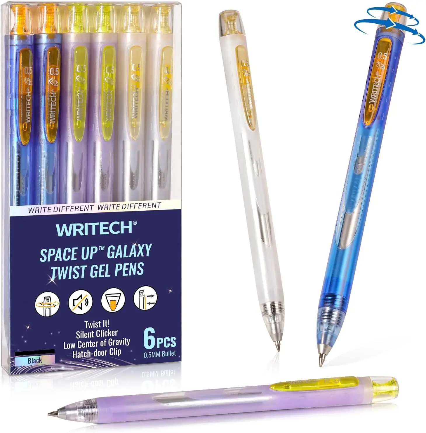 WRITECH Twist Gel-Ink-Stifte: Feine Spitze 0,5 mm Schwarz 6 Stück Niedriges Schwerpunkt drehbares Stift Kein Verschmieren Leises Klicken Platz nach oben Gel-Galaxie