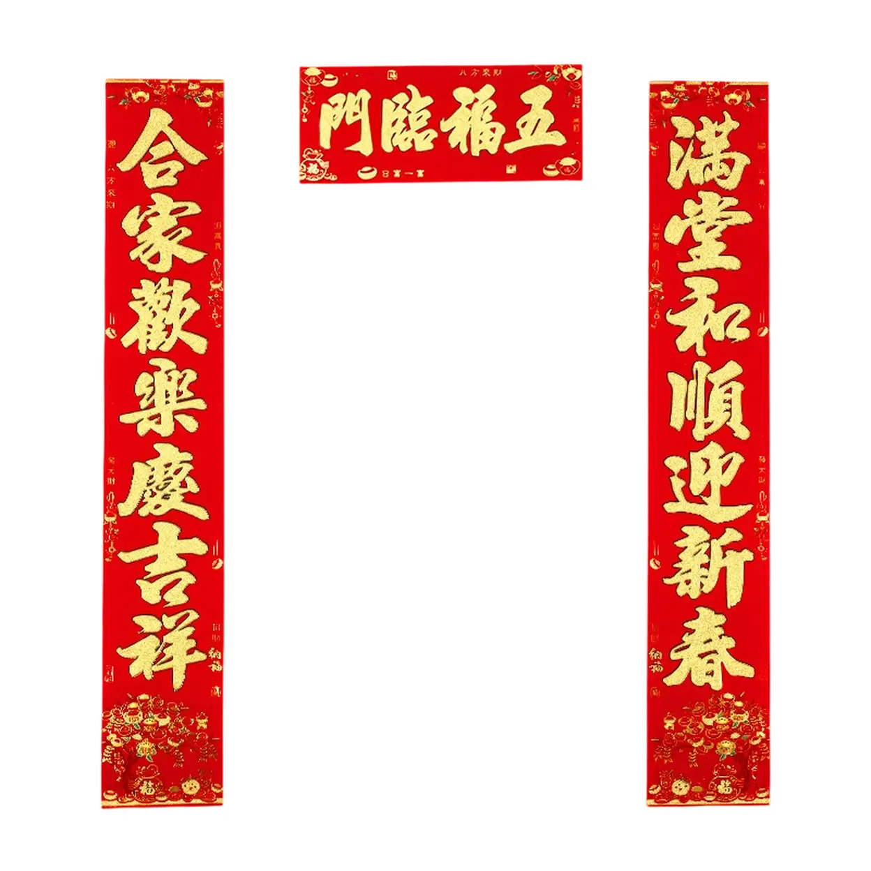 Wu Fu Lin 3 Stück/1 Set 62 Zoll chinesische Neujahr-Dekorationen 2026, selbstklebende Mondjahrhundert-Kuppelbezeichnungen-Set für Frühlingsfestival-Dekorationen, Men-Stil, Neuheiten-Verkauf, Top-Geschenkideen