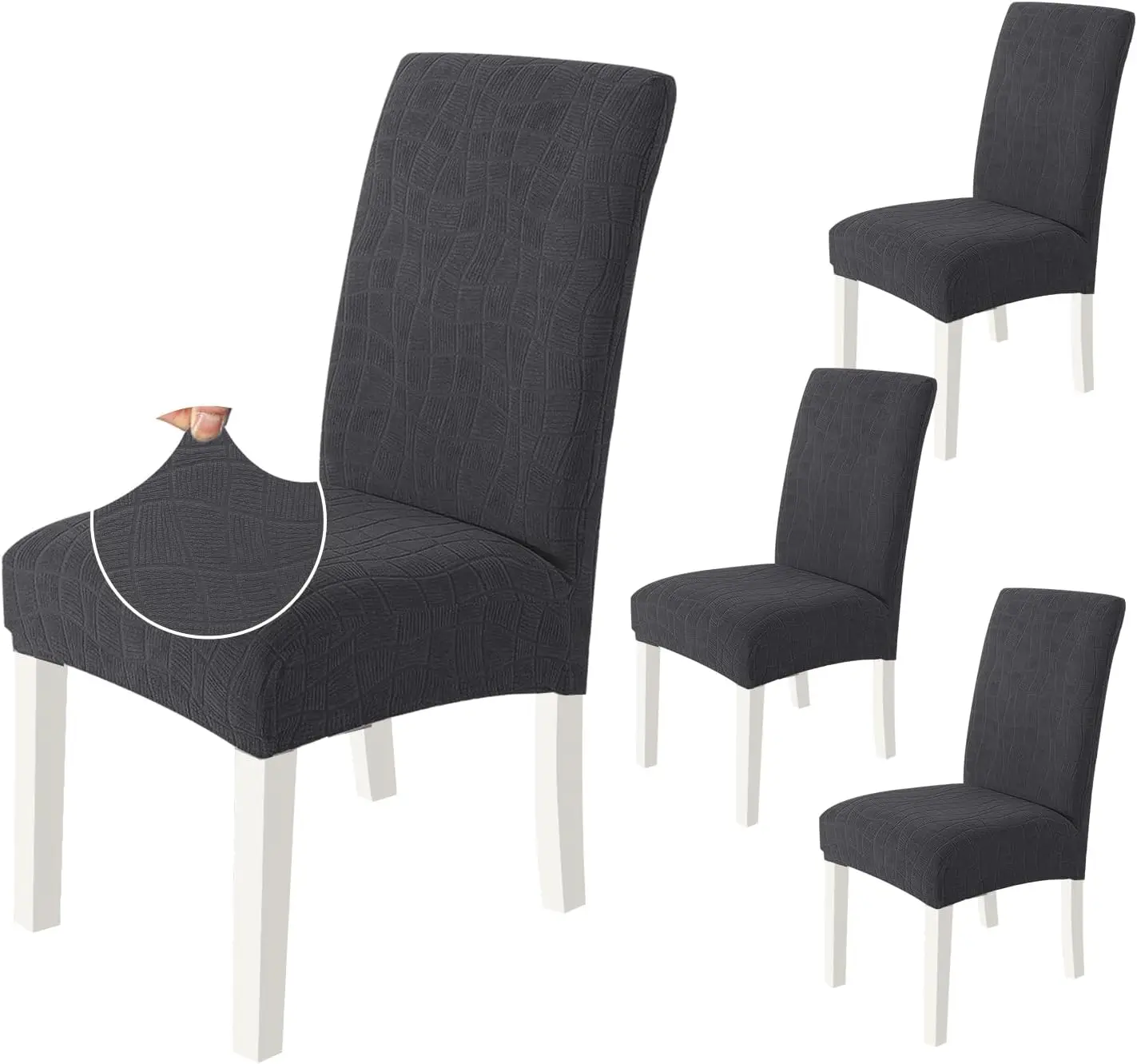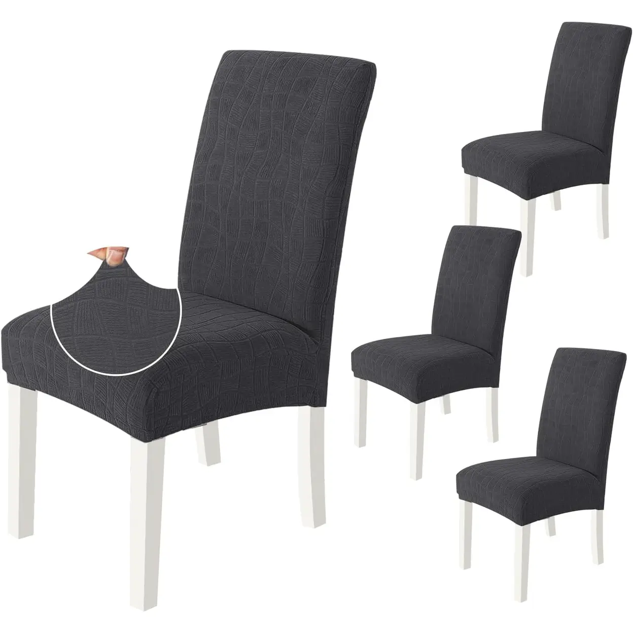 YSTYLE Dining Chair Covers Seat, Chair Slipcover for Dining Room, 4 Pieces, BW, Dark Grey