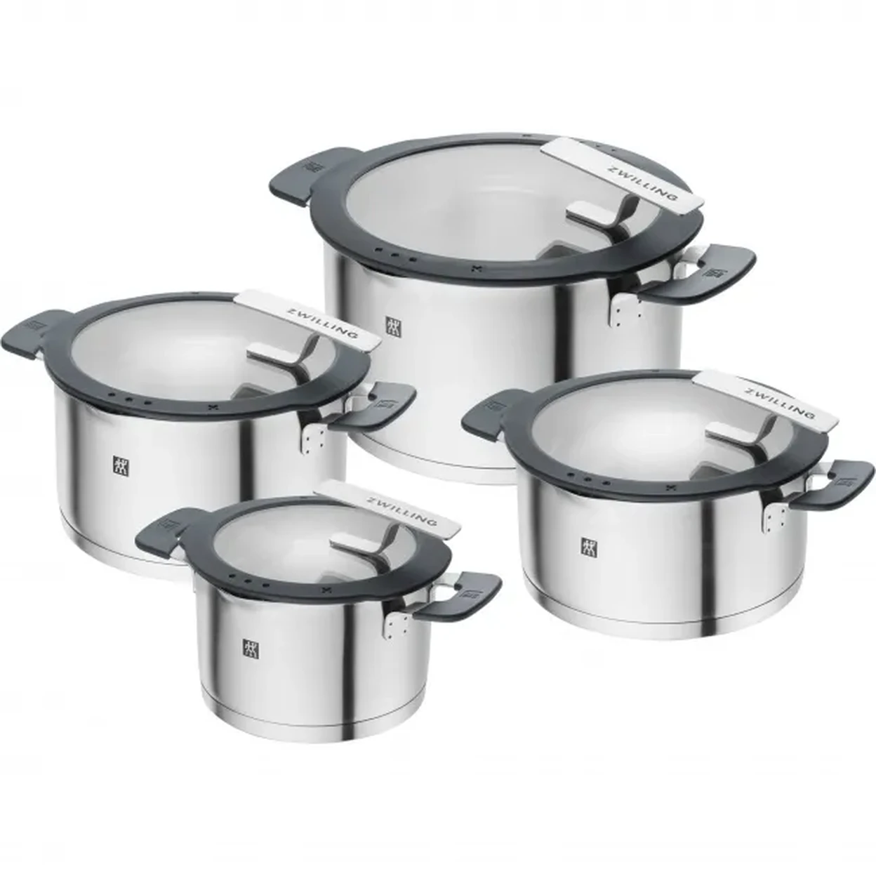 ZWILLING SIMPLIFY Edelstahl-Kochgeschirr-Set, 4-teilig mit Deckeln (Kochtopf & Bratpfanne) 46,6x26x37cm, 9,3kg, 100% Edelstahl