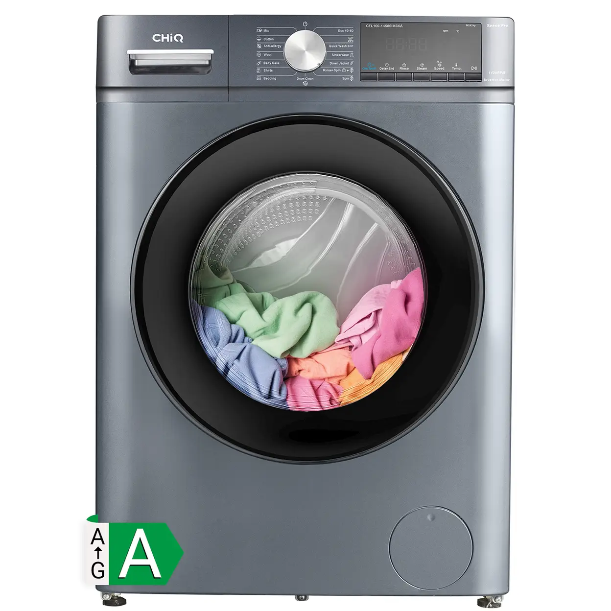 CHiQ Waschmaschine 10 kg, EEK A, BLDC-Motor 1400 U/min, 15 Programme, Dampfwäsche, 1-Touch Smart & 15-Minuten-Schnellwäsche, geringe Tiefe, grau, Für Küche/Haushalt/Wohnung, CFL100-14586IM3XA, 2025